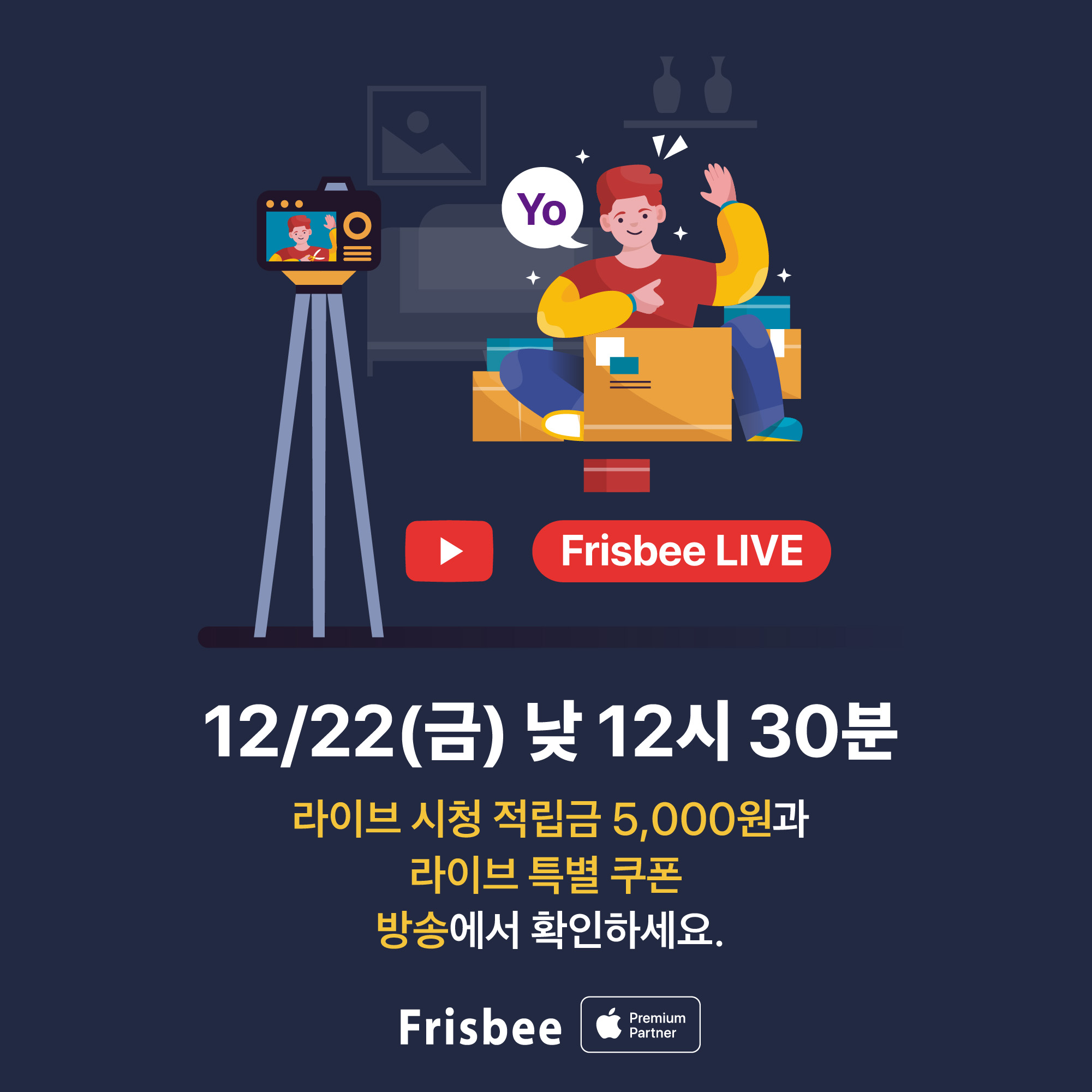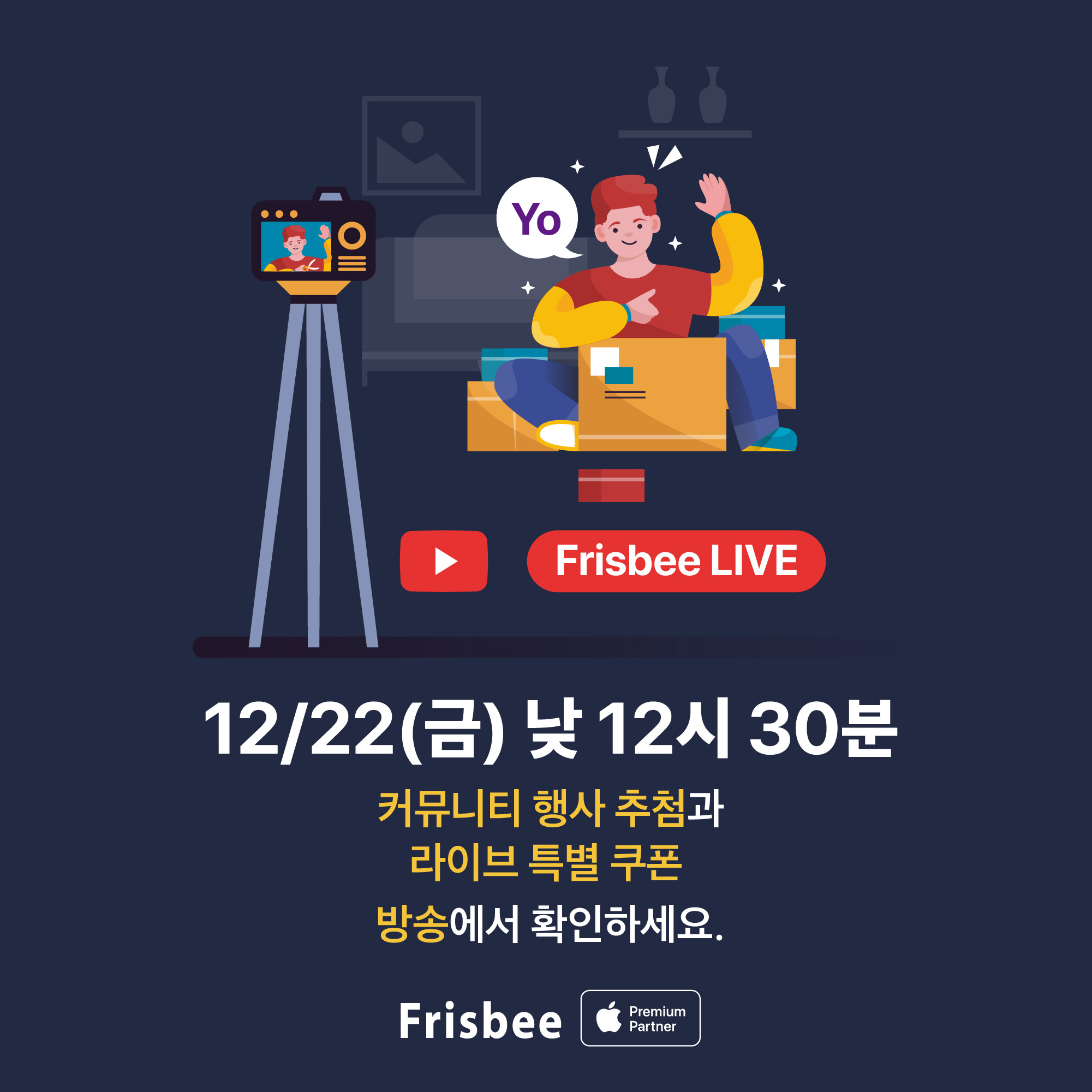 라이브 방송 일정은 12월 22일 금요일 낮 12시 30분입니다.