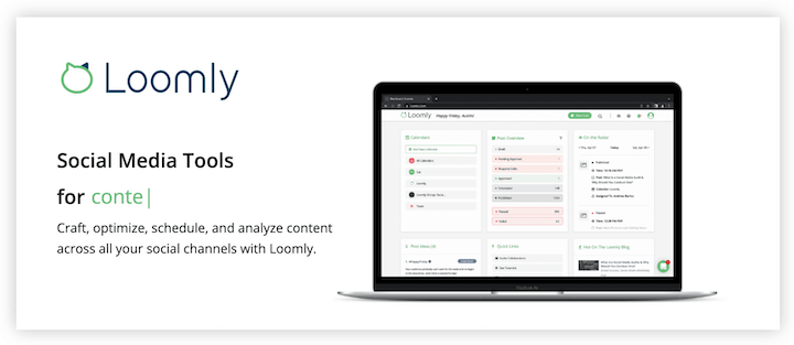 정적인 그래픽에만 국한되지 않습니다. Loomly의 랜딩 페이지에서는 소셜 미디어 도구에 대한 GIF를 확인할 수 있습니다.