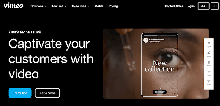 여기에 소개된 동영상은 제품의 다양한 기능을 짧은 숏츠로 보여주며, 갤러리 설정을 통해 사용자가 원할 경우 다시 볼 수 있습니다. 또한 Vimeo는 제품 비디오를 페이지 디자인에 통합하고 이 에셋을 사용하여 전환을 더욱 미묘하게 유도하는 훌륭한 작업을 수행합니다.