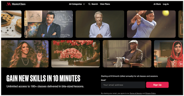 MasterClass는 이를 정말 잘 해낸 사례입니다. (겸손한 브랜드 이름을 고려하면 놀랄 일도 아닙니다.