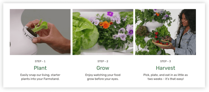 매력적인 비주얼과 훑어보기 쉬운 카피로 제품이나 서비스를 선명한 단계로 나누면 랜딩 페이지 방문자가 단계별 가이드를 굳이 찾지 않더라도 제품이나 서비스가 제공하는 내용과 작동 방식을 전달하는 데 도움이 됩니다.