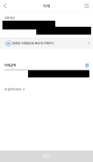 기업은행의 송금 서비스의 첫화면.