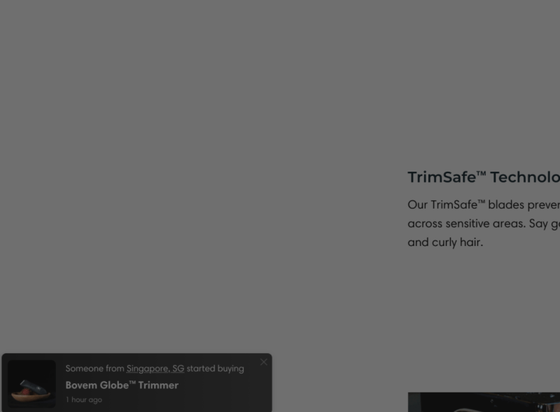 이미지의 왼쪽 하단을 보면 여러 팝업창을 보여줬다가 사라졌다가 하면서 실제로 사람이 구매하고 있다는 ‘느낌’을 줍니다(Someone from Singapore, SG started buying, 싱가포르의 누군가가 상품을 구매하기 시작했다고 하네요!) 물론 조금만 더 길게 보면 페이크라는 걸 쉽게 알 수 있지만, 그 정도로 랜딩페이지를 길게 머무르는 사람은 소수 뿐이죠. 그것보다는 아, 여기에서 누군가가 실제로 물건을 구매하는구나! 라는 인식을 주는 긍정적인 효과가 있을 가능성이 훨씬 높다는 거죠.