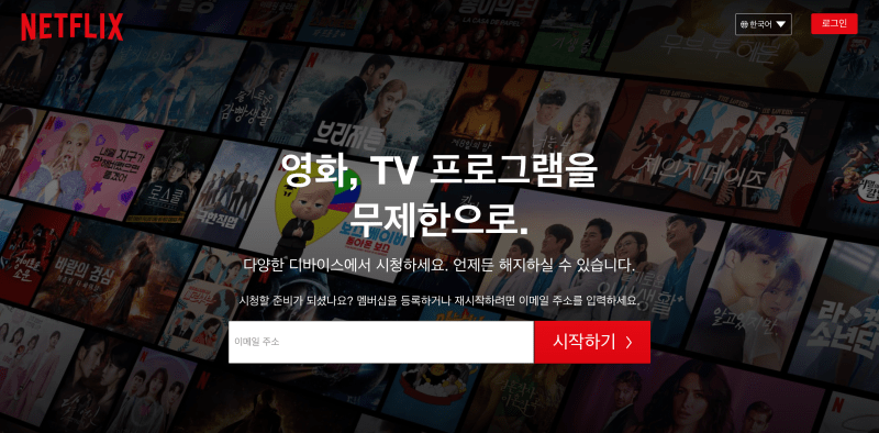 페이지에서 눈에 잘 띄는 버튼의 색상을 골랐나요? 넷플릭스는 어두운 디자인의 랜딩페이지에서 붉게 빛나는 버튼을 넣어 놓았습니다. 누구라도 이 버튼을 클릭하는 것이 ‘옳다’라고 느끼게끔 만들어야 합니다. 이 버튼을 누르고 싶게 만드는 디자인은 전환을 만드는데 도움을 줍니다.