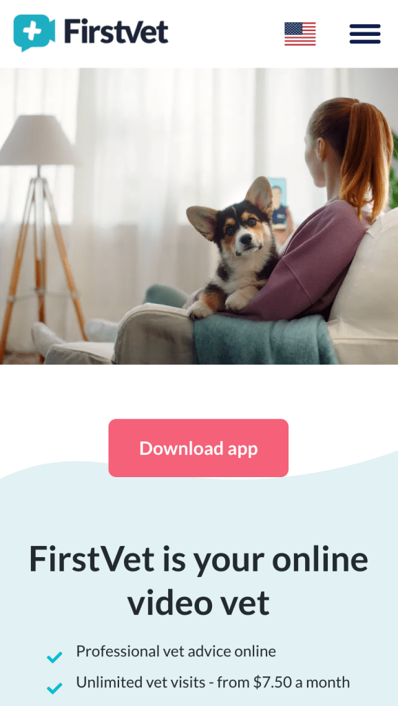 스웨덴의 강아지 수의사 서비스 FirstVet의 랜딩페이지의 CTA 버튼.