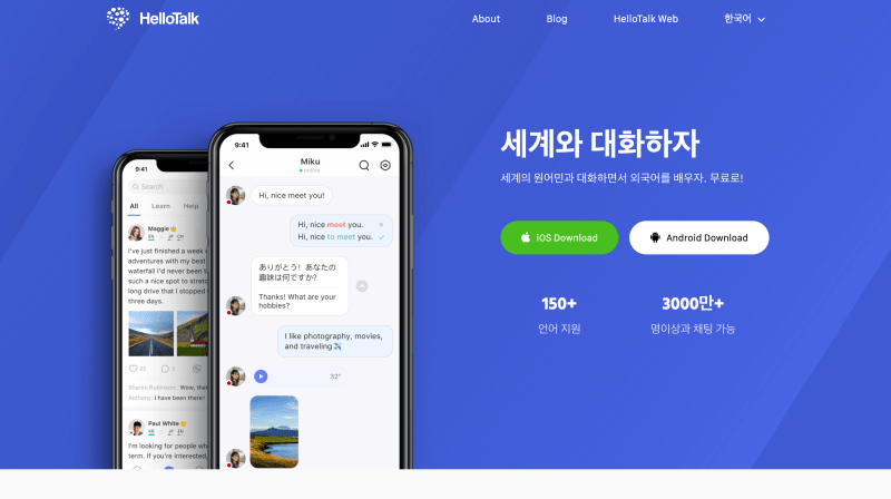 외국어를 배울 수 있는 서비스인 헬로우톡Hello Talk의 랜딩페이지의 첫문장