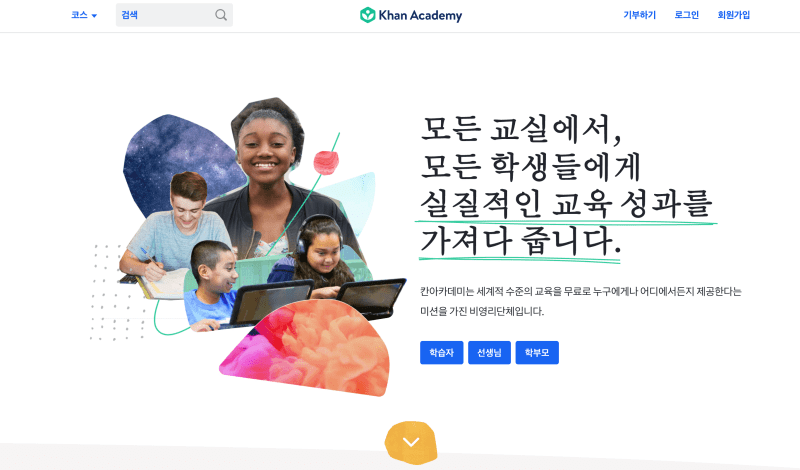 비영리 교육 기관인 칸아카데미의Khan Academy의 랜딩페이지의 첫문장